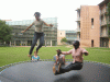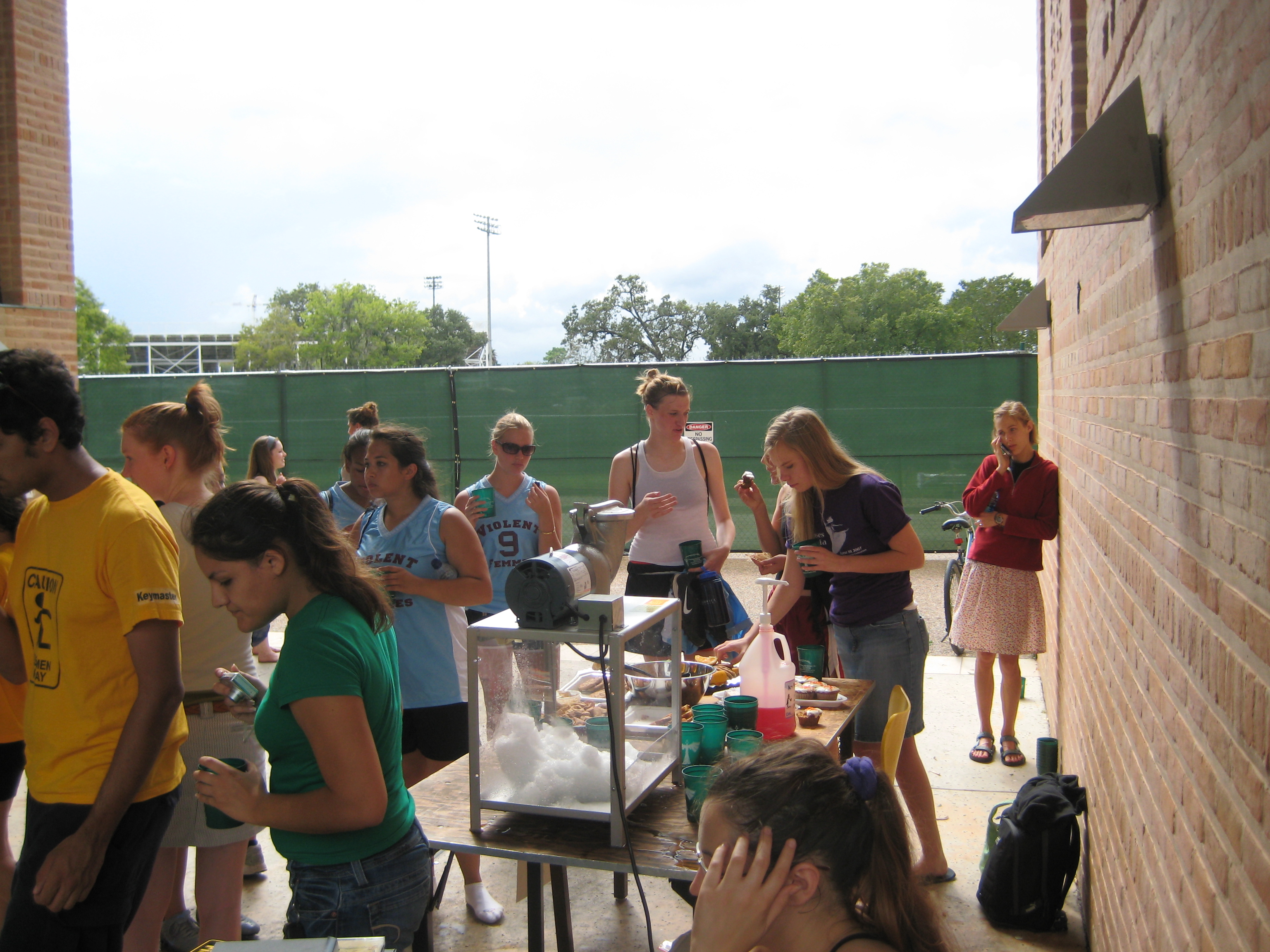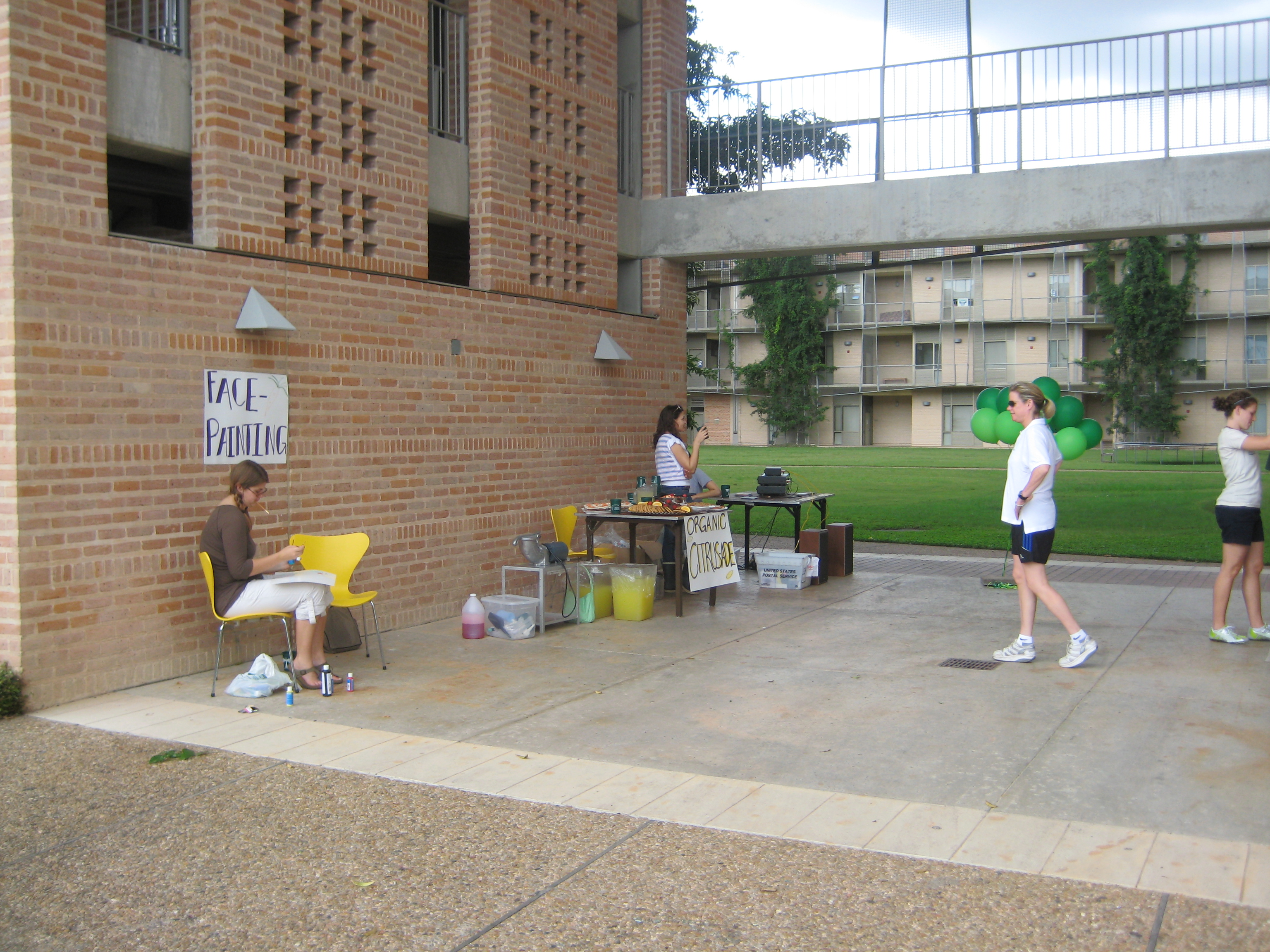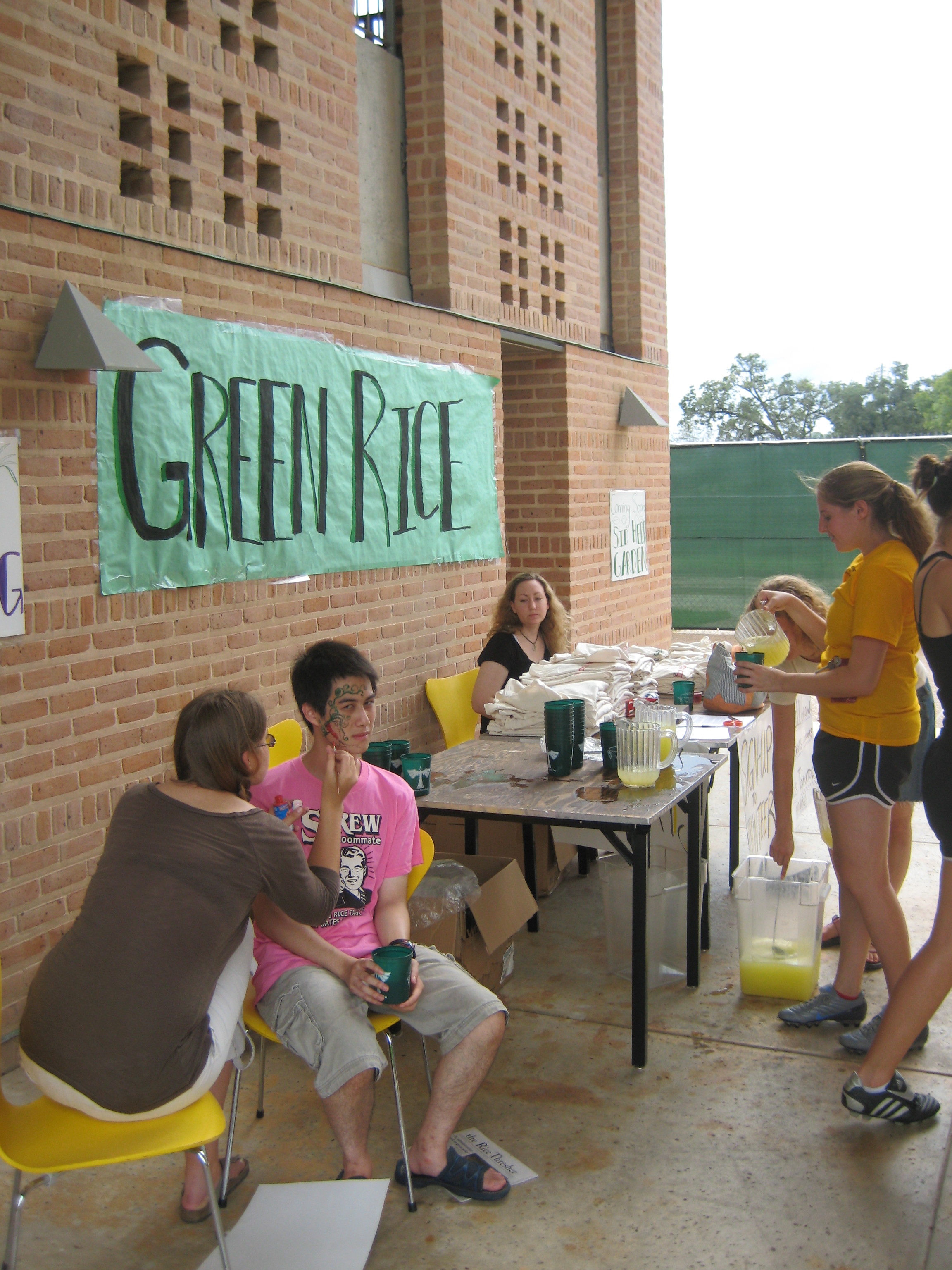 On October 7, 2007, Rice broke ground on its new community garden plot. Participants helped to move soil onto the beds and enjoyed free snacks (including organic citrus aid made from Rice's own trees), facepainting, music provided by KTRU, and a trampoline.