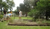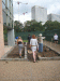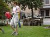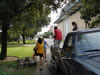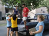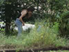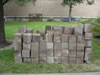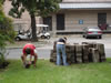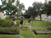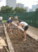Volunteers uproot and haul 40 lb. concrete blocks from the old Community Garden so that they can be re-used in the new site, located by Wiess College. (Click on the thumbnails to see the full-sized images.)