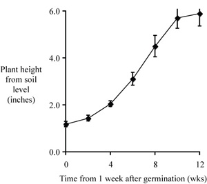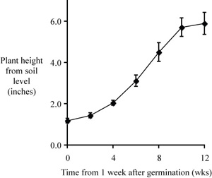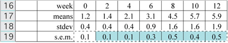 Now it's time for you to get in a little practice. Here is a set of data for Morus alba, the common species of mulberry in the eastern U.S. Again, we have inches of height versus time in weeks. Calculate the mean values, standard deviations, s.e.m. values, and create a plot just as we created for Acer palmatum. Now, if you wanted to compare the growth rates of these two species would you simply print the two plots side by side?