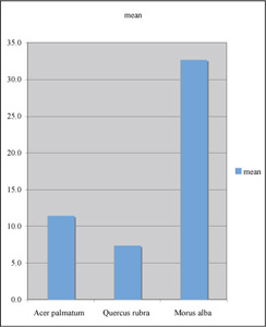 Here is what an initial column graph looked like, before making modifications. This time I highlighted the headings "species""mean" before choosing the Chart Wizard (omitting the s.e.m. for now).
