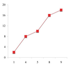 The line graph conveniently includes a trend line (interpolation), but it clearly misrepresents the linear relationship between variables.