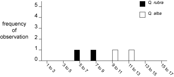 | Quercus alba | 11-13 | 9-11 | 5-7 | 9-11 | 11-13 | 7-9 | 7-9 | 7-9 | 5-7 | 7-9 | 7-9 | 5-7 |