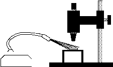 With a compound microscope, dark field is obtained by placing an occulting disk in the light path between source and condenser. A cheap set of occulting disks can be prepared by cutting circular pieces of black electrical tape ranging from dime-size up to a diameter that equals the width of the slide, and sticking them to the slide in a row. The circles should be spaced well apart. A specimen is placed on the microscope stage as usual, and the illumination should be made as uniform as possible. If there is an aperture diaphragm in the condenser (contrast lever), it should be opened up wide. After focusing at low power, the slide with occulting disks is placed in the light path between source and condenser, bringing it as close to the bottom of the condenser as it will go. I would start with the largest disk, sliding it around until it is directly in the center of the light path. Increasing the illumination should then produce a good dark field effect. To optimize, first try stopping down the field diaphragm to get the best contrast between background and specimen. Try to match the size of the occulting disk to the field diameter, so that the edge of the disk is just outside the field of veiw - smaller disks are appropriate for higher power objectives. Vertically, the disk should be a close to the condenser as possible, to make the contrast the greatest. On microscopes with built-in dark field equipment, the view is so impressive because the occulting disk is built into the condenser - very close and focused. After testing the set-up this way, a stand might be rigged to fit under the microscope, so the slide can be placed in position without holding it. Something that 'grabs' the condenser and supports the occulting disks would be ideal. The less the students have to mess with, the better. I set this up on the crummiest little piece of garbage microscope I could find, and it looked very good. A relatively new student-model microscope should give a much better effect. Suspensions of cells and samples of pond water look spectacular in dark field. While specimens may look washed out and lack detail in bright field, protists, metazoans, cell suspensions, algae, and other microscopic organisms are clearly distinguished and their details show up well. At 100x you can readily see bacteria, even distinguish some structure (rods, curved rods, spirals, or cocci) and movement. Non-motile bacteria look like vibrating bright dots against a dark background. Motile bacteria can be seen moving in a definite direction, sometimes remarkably fast. In pond water samples you may find Spirillum volutans, a very large (up to 0.5 mm) motile spiral bacterium. When to use dark field illuminationDark field illumination is most readily set up at low magnifications (up to 100x), although it can be used with any dry objective lens. Any time you wish to view everything in a liquid sample, debris and all, dark field is best. Even tiny dust particles are obvious. Dark field is especially useful for finding cells in suspension. Dark field makes it easy to obtain the correct focal plane at low magnification for small, low contrast specimens. Use dark field for