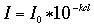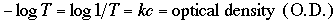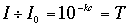 where k is a new constant and T is the transmittance of the solution. There is a logarithmic relationship between transmittance and the concentration of the colored compound. Thus,