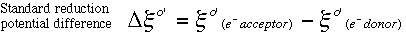 The energy needed to push protons out of the matrix and into the intermembrane space comes from the oxidation of either reduced NAD (NADH) or reduced FAD (FADH2). In the case of NADH, passage of an electron pair to Coenzme Q provides a "pulling" force. That is, NADH is much less electronegative than Coenzyme Q, while the iron-sulfur protein carriers in between are intermediate in electronegativity. The amount of available free energy is 69.5 kJ/mole of NADH (kiloJoules per mole). The efficiency of electron transport can be represented by the standard reduction potential difference, namely the voltage generated by a redox reaction under standard biochemical conditions.