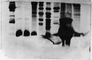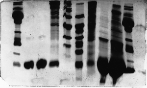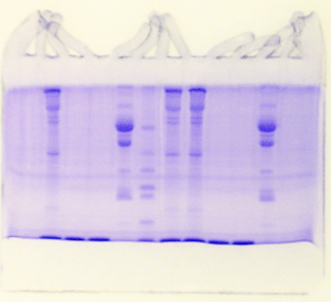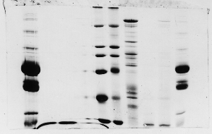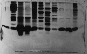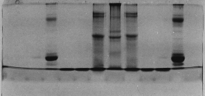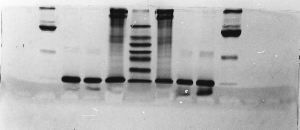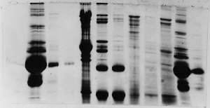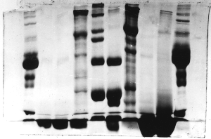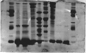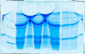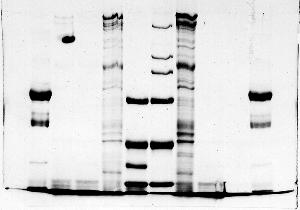 The "Hall of Shame" presents examples of some of the worst gels students (and instructor) have run in past labs, with an example or two from a research lab. They represent many of the ways one can mess up a gel (but not all of them - we're still finding new ways!). See what features of your own gel(s) were unsatisfactory - or at least less than perfect - and use the illustrations to figure out what you might do to improve your technique. Examples of past gels that didn't quite work outTo critique your own work identify your symptoms and use the gallery to select appropriate example(s). Each example is linked to a full sized image with suggessted explanations for the symptoms. From this "hall of shame" you should be able to determine what can be done to correct the problem(s). If you wish you may browse by descriptions of symptoms, listed below the gallery. GallerySymptomsSmears[Bad pour] [Gross overloading] [Overloaded, nonuniform gel] [Failure to denature sample] Streaks[Particles in sample] [Overloading] [Top of gel uneven] Bands too light[Sloppy loading] [Bad stain] [Overestimated protein concentration] [Forgot to stain] No dye front[Partial dye front] [No dye front with distortion] [No dye front with frown] Bands only at top of gel[Stopped early, diffuse dye front] [Stopped early, tight dye front] Miscellaneous[Crooked bands] [Horizontal lines] [No penetration] [Broken gel] [Field effects] Multiple symptoms[No dye front, crooked, overloaded] [Crooked, field effects, overloaded] [Torn gel, uneven loading] Bizarre results[Wrong electrode buffer] [Overheating] [Delay in running gels] [Moldy buffer] [Opened gel box during the run!] |