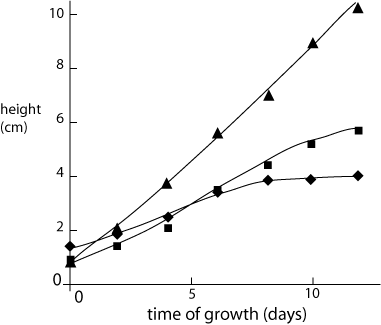 Each of these points is discussed in more detail below. If you are preparing a graph for publication you will also need to follow the publisher’s style guide, which typically specifies the allowed size of figures, fonts, labeling, and other typographic details. Those requirements are, however, only a minor adjustment to the general principles provided here. You might also be interested in our tutorial on using figures (Graphs). Purpose, Data and VariablesWhen designing your experiment you had to decide what quantities you would measure and how you would manipulate your experimental system. The quantities you choose to plot, and how you plot them, are an extension of that experimental design, allowing you to analyze and display the relationships inherent in your data. To be plotted at all, data have to consist of variable quantities. There is no point in plotting something that doesn't vary - a simple statement saves the trouble of preparing a figure. Variables can be classified in two different ways: Independent vs dependent and parametric vs categorical. Different classes are handled differently in a graph. The independent variable is a quantity or category that is subject to choice or manipulation by the investigator. Examples of independent variables are time, temperature, distance, species, and country. Effective figures almost always use only one independent variable per plot. A dependent variable is a measured property that varies as the independent variable is changed. A data series or set consists of a group of measurements corresponding to selected values or categories of an independent variable. Effective figures often plot more than one data series on a set of axes. A parametric variable is one that has a numeric value. It may be continuous, like height and time, or discrete, like a population count. The distinguishing feature is that it has a definite numeric value and can be plotted on a scale. Categorical variables, like species and country, represent distinct groupings, with no intermediates. It is possible to list categories, but not to assign the category itself a meaningful number that could be plotted. As an example, suppose that you collected data on the growth rate of several species of plant by measuring plant height at the same time every day. The (faked) results are shown in Table 1. Time is a continuous independent parametric variable which you controlled by deciding at what intervals to make measurements. Height is a continuous parametric dependent variable - the height of each type of plant depended on the number of days it was growing and on the species. The species is an independent categorical variable. Height clearly changed with time and species, so it is reasonable to plot these data in some fashion. Exactly how depends on what you want to demonstrate. If growth rate is of interest, you might plot height vs time for all three species. If only the final height is important you could plot height at day 12 vs species name. Table 1. Vertical growth of selected plants*