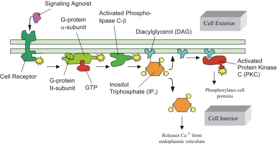 translocation of protein kinase C and production of diacylglycerol and
