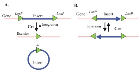site-specific recombination mechanism. Cre recombinase catalyzes DNA