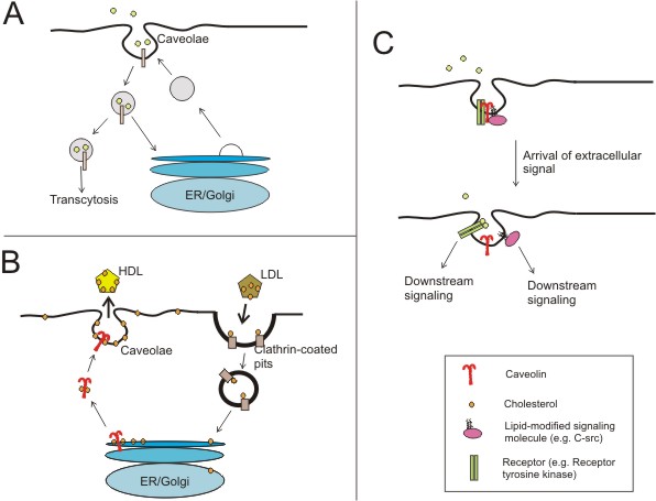 rafts and caveolae (adapted from (Galbiati et al., 2001)). Lipid