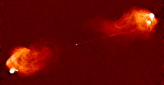 radio galaxy Cygnus A, displaying both its beautiful asymmetric jets