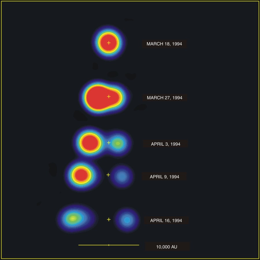 A time sequence of radio images of the galactic microquasar GRS1915+105 is depicted