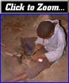 I spoke with BahAlkoye Sounkono, a blacksmith apprentice who is 12 years old. The master blacksmith was not in the workshop when we arrived. The apprentice was making ember carriers (big spoons with long handles so you could carry embers from one fire to another). They all worked sitting down on the dirt floor. BahAlkoye starts early in the morning and ends the day at 6:00. He does not live close to the workshop. BahAlkoye wants to be a blacksmith because all the males in his family are blacksmiths. Women can not become blacksmiths. The items he makes he sells in the local markets on market day. He gets paid to take the goods and sell them at the market. He can earn about 1,000 CFA a day in the marketplace. This is about two dollars. His master takes care of his expenditures. He does not travel to other small villages to sell tools he makes. He could not remember how long he has been an apprentice, although another apprentice suggested he had been there for five years. He does not know how long he needs to be an apprentice before he becomes a master.
